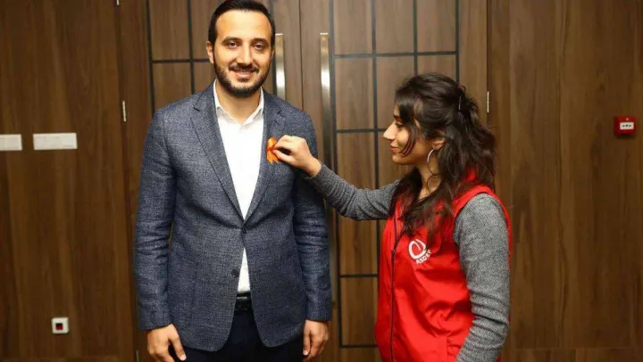 Sanatçı Merve Gündoğdu'nun da şarkılar seslendirdiği programın sonunda davetliler kadına şiddetle mücadele konusunda farkındalık amacıyla yakalarına taktıkları turuncu rozet taktı.