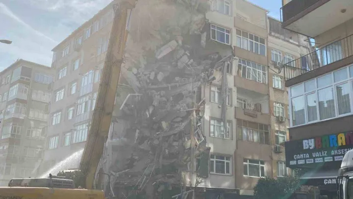 Bahçelievler'de kolonları çatlayan binanın yıkımına başlandı