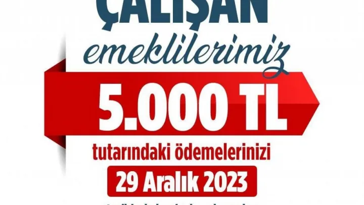 Çalışma ve Sosyal Güvenlik Bakanı Vedat Işıkhan, 'Çalışan emeklilerimizin 5 bin Türk lirası tutarındaki ödemeleri 29 Aralık Cuma günü banka hesaplarına yatırılacaktır' dedi.