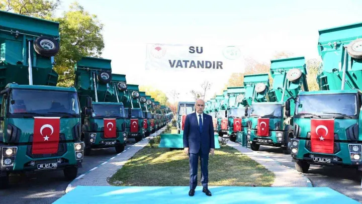 Bakanlık olarak felsefelerinin suyun düştüğü yerde tutulması olduğunu anlatan Kirişci, 'Ben eminim DSİ, bu 60 damperli araçla hem araç parkında hem yaş itibarıyla yenileme hem de daha fazla iş yapabilme kabiliyetine sahip olacaktır. Su bizim olmazsa olmazımız. Biz su fakiri bir ülke değilsek de su zengini bir ülke de değiliz. Bunu her vesileyle söylediğimiz için vatandaşlarımızda da artık çok iyi bir kanaat oluştuğu düşüncesindeyim' diye konuştu.
