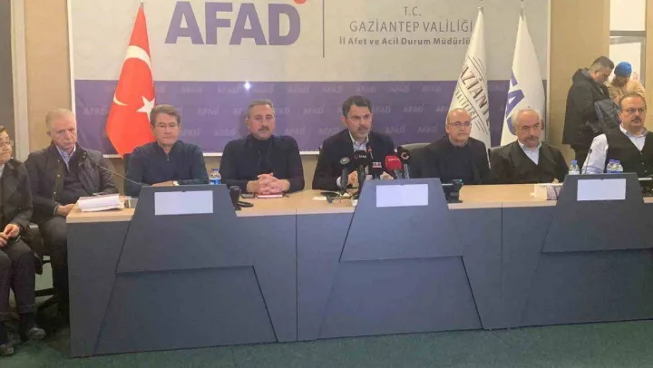 Kahramanmaraş merkezli depremlerde, çok sayıda binanın yıkıldığı ya da hasar gördüğü Gaziantep'e gelen Çevre, Şehircilik ve İklim Değişikliği Bakanı Murat Kurum toplantı düzenledi. Gaziantep AFAD Koordinasyon Merkezi'ndeki toplantıya Bakan Kurum'un yanı sıra, eski bakanlar Mehmet Şimşek ve Abdülhamit Gül, Gaziantep Valisi Davut Gül, İl Emniyet Müdürü Mustafa Emre Başbuğ, İl Jandarma Komutanı Tuğgeneral Hidayet Arıkan, askeri erkan, AFAD yetkilileri ve kurum müdürleri katıldı. Bakan Kurum 10 ilde 307 bin 763 binanın incelendiğini söyleyerek, Cumhuriyet tarihinin en büyük afet konutu seferberliğini başlatarak, 1 yıl içerisinde tamamlayacaklarını ifade etti.