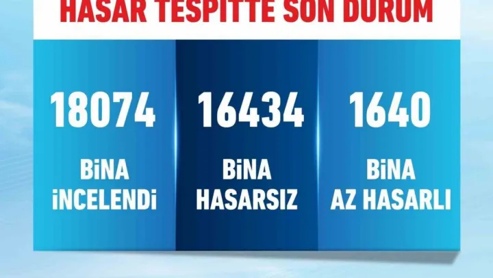 '18 bin 74 binayı inceledik. 16 bin 434 binanın hasarsız, 1640 binanın az hasarlı olduğunu tespit ettik. Hasar tespit çalışmalarımızın tamamlanmasıyla gerekeni yapacağız'.