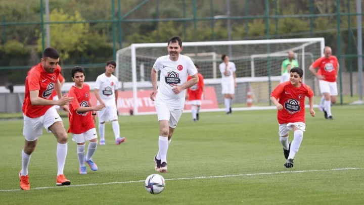 Maç sonunda konuşan Bakan Murat Kurum, 'Bugün yine büyük Türkiye ailesi, en büyük dayanışmayı gösterdi. 6 Şubat sabah 04.17'de büyük bir acıyla uyandık. 81 ilimiz bu acıyı derinden hissetti. Kahramanmaraş Pazarcık merkezli depremde 11 ilimiz etkilendi. 14 milyon vatandaşımız etkilendi. Bu deprem sebebiyle 50 bin 400 vatandaşımızı, yavrumuzu, annemizi, babamızı kaybettik. Depremin ilk anından itibaren seferberlik anlayışıyla afet bölgesindeydik. 85 milyon tek yürek olduk. Afet bölgesinde biz günlerce aylarca kaldık. 81 ilden kardeşlerimizi gördük, yavrularımızı gördük. Bu birlik beraberlik 11 ilimiz için oradaki mücadelemiz için devam etti. Bugün de 11 ilimizdeki kardeşlerimizle, afetzede çocuklarımızla beraber, Süper Lig'den futbolcularımızla, birbirinden kıymetli hocalarımızla Şampiyonlar Ligi'nde ilk düdüğümüzü çalan Cüneyt Çakır hocamızla, Futbol Federasyonumuzun ev sahipliğiyle Riva'da bir maç yaptık, dostluk kazandı. Belki farklı takımları tutabiliriz ama acımız ortak, acımız 11 ilimiz deprem bölgemiz. 85 milyonun acısı bu manada ortak. Bizler nasıl Sayın Cumhurbaşkanımızın liderliğinde 11 ilimizde daha önceki depremlerde olduğu gibi; Elazığ'da, Malatya'da, Trabzon'da, Rize'de, Bartın'da illerimizi ayağa kaldırdıysak, 11 ilimizi de 85 milyonluk büyük Türkiye ailesiyle birliğimizi beraberliğimizi koruyacağız. 11 ilimizi ayağa kaldıracağız, konutlarımızı yapacağız. Oradaki tarihi kültürel değerlerimizi ayağa kaldıracağız. Çocuklarımıza geleceğimize daha güzel bir gelecek sunabilmek için bu mücadeleyi vereceğiz. Ben burada depremi yaşamış hocamız, onlara teşekkür ediyorum. Gerçekten çok zor bir süreçti. Orada futbolcularımızı ve oyuncularımızı kaybettik ama işte bu büyük Türkiye ailesi annesini, babasını kaybetmiş çocuklarımızın anneleri olacak, babaları olacak, aileleri olacak. Depremzede kardeşlerimiz bizim evladımız olacak. Annelerimiz babalarımız el ele tutuşup o illerimizi ayağa kaldırana kadar acımızı dindirene kadar elimizi gönlümüzü deprem bölgesinden hiç ayırmayacağız. Ben bu organizasyon sebebiyle futbol federasyonu başkanımıza, Cüneyt Çakır hocamıza, Volkan Demirel hocamıza, Arda Turan hocamıza Süper Lig'deki bütün profesyonel futbolcularımıza en büyük teşekkürü de bu yavrularımıza ediyorum' diye konuştu.