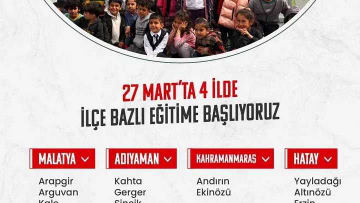 4 ilde eğitime başlanacak ilçelerin listesi ise şu şekilde: