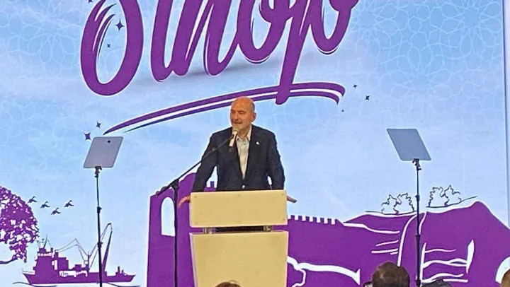 Konuşmasına yeni petrol rezervi müjdesiyle başlayan Bakan Soylu, 'Bugün bu salonda birlikte olduğumuz kıymetli Sinoplu hemşerilerim, öncelikle bu güzel akşamı bizlerle paylaştığınız için her birinize ayrı ayrı şükranlarımı sunuyorum hepinizi hürmetle saygıyla ve muhabbetle selamlıyorum. Size bir müjde ile başlayayım. Bu sabahın 6'sında Şırnak Valimiz aradılar. Esma Çevik 1 bölgesinden ve kuyularından petrol çıkmıştı. 100.000 varille yine kuyudan petrol çıktı. Şimdi bu sabah itibari ile büyük bir heyecanla ve müjdeyle beni aradı. Dedi ki siz uyumazsınız biliyorum Esma Çevik 2 kuyusunu uzun zamandır vuruyorlardı, bu sabah ondan da müjdeli haber geldi.' dedi.