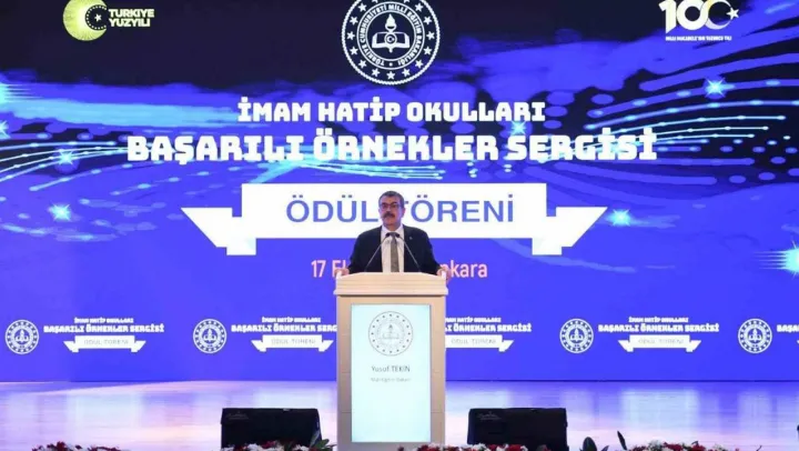 Milli Eğitim Bakanı Yusuf Tekin, Talim ve Terbiye Kurulu Başkanlığında gerçekleştirilen 'İmam Hatip Okulları Başarılı Örnekler Sergisi Ödül Töreni'ne katıldı. Ödül töreninde konuşan Bakan Tekin, öğrencilerin sadece okulla ve okul dersleriyle sınırlı olmayıp okul dışındaki farklı ortamlarda ve ders dışı etkinliklerle de yer alması gerektiğini ifade ederek, 'Temel eğitimden ortaöğretime geçiş sürecinde çocuklarımızın bu tür sosyal etkinliklerini sanatsal etkinliklerini, sportif etkinliklerini; bir üst kademe eğitim sistemine başlarken bir veri olarak kullanabileceğimizi kullanmamız gerektiğini, çocuklarımızı buna teşvik etmemiz gerektiğini sürekli söyledik. Bugün de yaz aylarında yayınladığımız Ortaöğretim Kurumları Yönetmeliği ve geçtiğimiz günlerde yayınlanan Temel Eğitim Yönetmeliğinde de bunun izdüşümleri var. Aynı şeyi yeniden hayata geçirmek istiyoruz. Gençlerimiz, çocuklarımız sadece okul binalarının içerisinde derslik binalarının içerisinde kalmasın. Öğretmen kardeşlerimiz, öğretmen arkadaşlarımız sadece ilgili dersle ilgili çocuklara destek olmasın. Onun dışındaki konularda da birlikte çalışma kültürünü geliştirelim. Türkiye'nin değişik alanlarındaki gelişim trendine biz de destek olalım. Sosyal etkinliklerin bu türden sempozyum, panel, konuşma, proje bütün bunların çocuklarımızın okul başarılarının bir üst kademeye geçiş, yani kademeler arası geçişte kullanılabilmesinin yavaş yavaş altyapısını oluşturalım istiyoruz' diye konuştu.