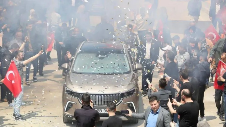 Bakan Varank vatandaşlardan büyük ilgi görürken, 'Kapadokya' renkli yerli otomobil Togg da ilgi odağı oldu. Orhaneli meydanına asılan 'Naptın sağdıç' yazısı ise dikkat çekti.