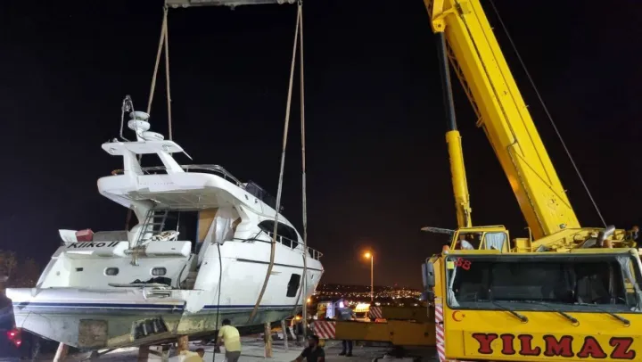200 tonluk özel vinç yardımıyla Deniz Grup Marina'nın bahçesine getirilen yatın bakımı yaklaşık 6 ay sürecek.