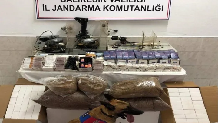 Balıkesir İl Jandarma Komutanlığı ekipleri, kaçak tütün mamulleri kaçakçılığına yönelik yapılan istihbari çalışmalar neticesinde, Balya ilçesinde kaçak tütün mamulleri imal ve ticareti yaptığı tespit edilen 2 şüphelinin ikamet ve işyeri adreslerinde aramada; 12 bin 300 adet dolu makaron, 40 bin adet boş makaron, 35 kg. kıyılmış kaçak tütün, 43 adet elektronik sigara likidi ve 3 adet otomatik sigara sarma makinesi ele geçirilmiştir. Olaya karışan 2 şüpheli hakkında adli işlem başlatıldı.