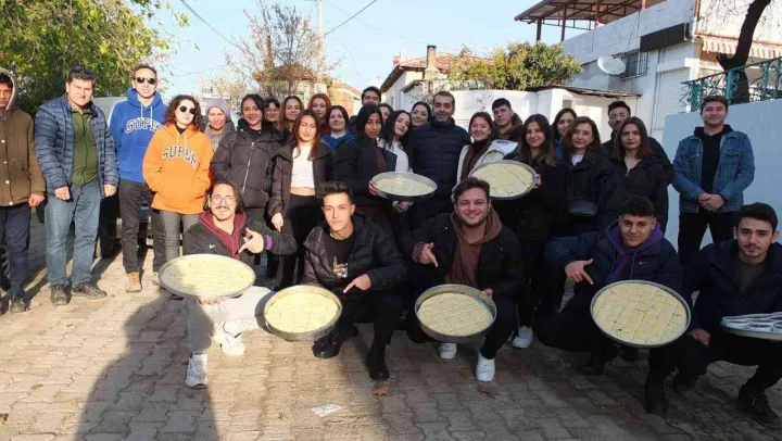 İlçede 2 yıl önce eğitime başlayan Gastronomi ve Mutfak Sanatları Bölümü öğrencileri ekşi mayalı ekmek yapımı ve yağlı pide yapımını öğrendi. Sabah saatlerinde bir işletmede hamur hazırlayan öğrenciler, tepsilerde yağlı pide hazırladı. İlçeye 9 kilometre uzaklıktaki Dutluca köyüne giden öğrenciler burada fırın yaktı ve hazırladıkları ekmek ve yağlı pideleri pişirdi. Burhaniye Uygulamalı Bilimler Fakültesi Dekanı Prof.Dr.Mehmet Oğuzhan İlban, bölgenin yemek kültürünü öğrencilere aktarmaya çalıştıklarını ve Uygulamalı Bilimler Fakültesi olarak Gastronomini ve Mutfak Sanatları bağlamında da öğrencilerimizle birlikte bölgemize güç katıp Türkiye'yi doyuran şehir Balıkesir'e gastronomi alanında desteklerimizi vermeye devam ediyoruz'dedi. Hamurla tanıştıklarını anlatan Melisa Selen Kunt, 'Bu gün sınıf olarak hepimiz hamurla tanıştık. Bizim için çok farklı bir deneyim oldu. Nohuttan nasıl maya yapıldığı öğrenildi. Köy fırınında farklı bir şekilde nasıl yapıldığını, ateşin nasıl yakıldığını hamurların nasıl ekmeğe dönüştüğünü gördük. Hem o, hem de ayrı olarak Balıkesir yöresinin değişik lezzetlerinden biri olan yağlı pidesini yaptık. Bizim için gastronomi bölümü öğrencileri için çok farklı ve güzeldi. Burada emeği geçen hocalarımıza bize yardımcı olan herkese teşekkür ederiz' dedi. Şevki Samet Yılmaz da, 'Bu gün hocalarımızla birlikte bölgemizin önemli köylerinden birisi olan Dutluca köyüne geldik. Burada büyüklerimizle birlikte yağlı pide yapımını ekşi mayalı ekmek yapımını öğrendik. Her aşamasında bulunduk. Daha sonrası da tattık. Ve oldukça lezzetliydi. Burada öğrendiğimiz bilgileri gelecek nesillere aktarmak için elimizden geleni yapacağız' dedi.