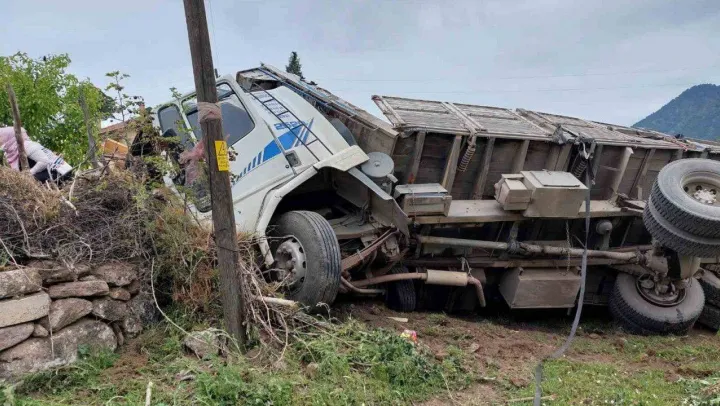 Edinilen bilgiye göre, Dursunbey ilçesi Sacayak Mahallesi'nde sabah saatlerinde freni boşalan Mustafa Özyurt idaresindeki kereste yüklü kamyon, yolun kenarına devrildi. Kazada araçta bulunan 4 kişi yaralandı. Dursunbey Devlet Hastanesine kaldırılan yaralıların hayati tehlikelerinin bulunmadığı öğrenildi.