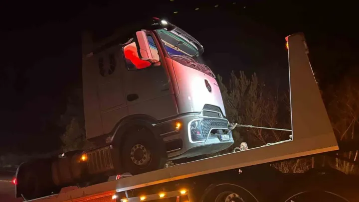 Balıkesir'de tırın direksiyonunun kilitlenmesi sonucu trafik felç oldu