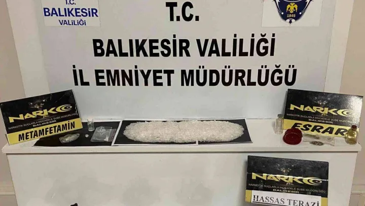 Edinilen bilgiye göre, Balıkesir İl Emniyet Müdürlüğü Narkotik Suçlarla Mücadele Şube Müdürlüğü, Ayvalık Narkotik Suçlarla Mücadele Grup Amirliği ve Edremit Narkotik Suçlarla Mücadele Grup Amirliği görevlilerince uyuşturucu madde ticaretini, kullanımını ve sokak satıcılarının faaliyetlerin önlemeye yönelik operasyon düzenlendi. İl merkezi, Ayvalık ve Havran ilçelerinde yapılan 4 ayrı çalışmada 13 zanlının araçlarında ile ikametlerinde yapılan aramada; 489 gram metamfetamin, 9 kilo 408 gram esrar, 32 sentetik uyuşturucu hap, 1 hassas terazi, 5 tabanca ve 4 şarjör, 1 tüfek, 11 fişek, 11 iz fişeği, 16.2 litre kaçak/sahte alkol, 1 payp aparat ele geçirildi.