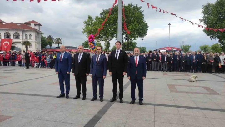 19 Mayıs Atatürk'ü Anma Gençlik ve Spor Bayramı, Cumhuriyet Meydanı'nda düzenlenen törenle kutlandı. Tören saygı duruşu ve İstiklal Marşı'nın okunmasıyla başladı. Daha sonra İlçe Gençlik ve Spor Müdürlüğü'nün çelengi Atatürk heykeline sunuldu. Günün anlam ve önemi belirten bir konuşma yapan İlçe Gençlik ve Spor Müdürü Hüseyin Elüstü, 'Bütün umutların tükenmeye başladığı bir dönemde Mustafa Kemal Atatürk, 'Türk milleti için bağımlı yaşamaktansa ölmek daha iyidir' diyerek 19 Mayıs 1919 tarihinde Samsun'a çıkmıştır. Özgürlük mücadelemizin de başlangıcı olmuştur. Bu tarih ile birlikte Türk milleti, esaret altında var olunamayacağını ve kutsal vatan topraklarımızın ilelebet işgal edilemeyeceğini tüm dünyaya haykırmıştır. Kurtuluş Savaşı bu destanın adı, Mustafa Kemal Atatürk'ün önderliğindeki Türkiye Büyük Millet Meclisi de bu destanı yaşatan milletin kalbidir. Ay yıldızlı bayrağımızın altında hepimizin bir ve bütün olarak yaşamasına imkn sağlayan Türkiye Cumhuriyeti'dir. Tüm kurumlarıyla dimdik ayakta olan devletimizin sonsuza kadar devam edeceğinden kimsenin şüphesi olmasın. Bu duygu ve düşüncelerle Cumhuriyetin kurucusu Büyük Önder Mustafa Kemal Atatürk'ü, silah arkadaşlarını, gazilerimizi ve bu vatan için canlarını feda eden aziz şehitleri rahmet, minnet ve saygıyla anıyorum. Gençlerimizin bayramı kutlu olsun' dedi.