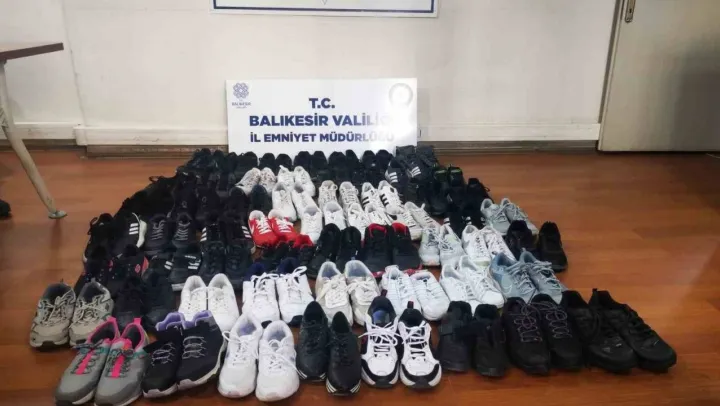 Edinilen bilgilere göre, 600 Evler, İhsaniye, HacıYusuf mahallelerinde 4 gün içinde meydana gelen çok sayıda ayakkabı hırsızlıkları üzerine polis çalışma başlattı. Bandırma Asayiş Büro Amirliği ekiplerince çevredeki güvenlik kameraları detaylıca incelendi. Görüntülerde, bir şahsın apartman içlerine girerek ayakkabıları çaldığı görüldü. Çalışmalarının devamında, kameralardan kimliği tespit edilen şüpheli A.Ç. (56) çaldığı farklı markalardaki 60 çift ayakkabı ile yakayı ele verdi. Ele geçirilen ayakkabılar sahiplerine teslim edildi. Şüpheli A.Ç. (56) gözaltına alındı.