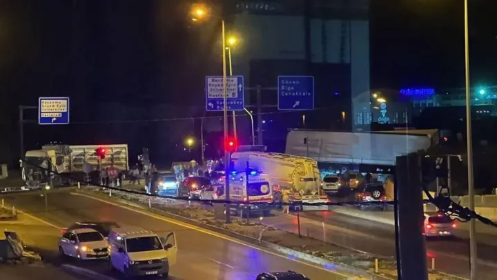 Bandırma'da ışık ihlali kazaya neden oldu: 2 tır çarpıştı