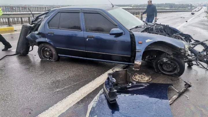 Bandırma'da trafik kazasında aracın motoru 25 metre uçtu