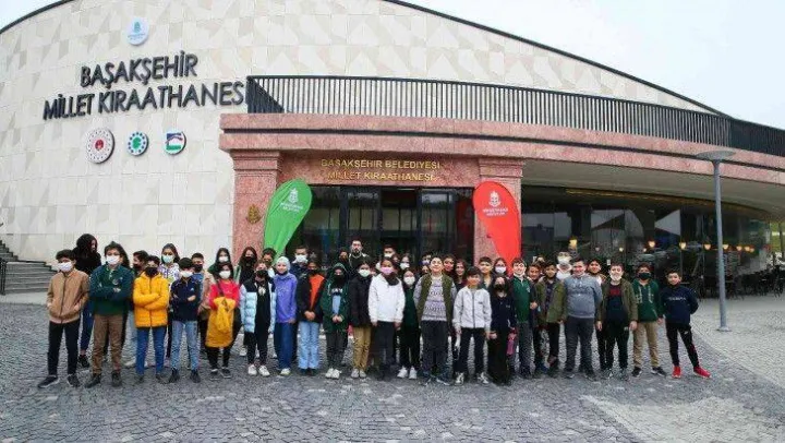 Başakşehir Millet Kıraathanesi'nde çocukların ilk durağı çok amaçlı salon oldu. Burada çocuklara kütüphanenin faaliyetleri, ödünç kitap alma, randevu gibi hizmetler hakkında bilgi verildi. Ardından Başakşehir Belediyesi'nin görme engelliler için başlattığı 'Senin Sesin, Benim Kitabım' projesi tanıtıldı. Çocuklar, burada seslendirme yaparak kitaplara ses oldular.