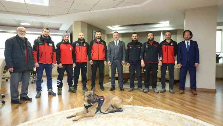 Kocaeli Büyükşehir Belediye Başkanı Tahir Büyükakın, Sar Arama Kurtarma Derneği Başkanı Erdem Veysel Akın ve İHH Kocaeli Temsilcisi İsmail Yeşildal ile arama kurtarma ekibini makamında konuk etti. Başkan Büyükakın, 'Günlerce enkazlarda bir cana daha ulaşabilmek için çalıştınız. Bölgede şunu bir kez daha görme şansımız oldu. Yıllardır aldıkları eğitimleri en doğru şekilde kullanan arama kurtarma ekipleri vardı. O günlerde cana can katmak için gayret eden tüm arama kurtarma ekiplerimize çok teşekkür ediyorum. Cana can kattınız. Bu çok değerli ve bir o kadar çok zor bir görevdi. Bu zorlu arama kurtarma faaliyetlerine katılanlardan biri olan arama köpeği Patron da enkazlardan depremzedelerin sağ kurtulmalarını sağladı' ifadelerini kullandı.