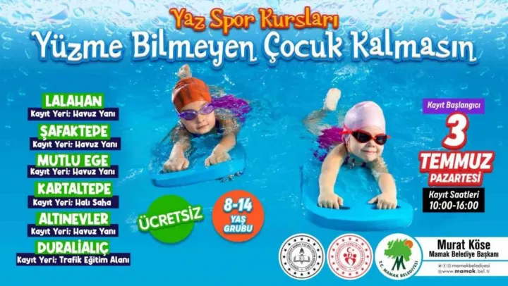 Lalahan, Şafaktepe, Mutlu Ege, Kartaltepe, Altınevler ve Durali Alıç Mahallelerinde kurulan portatif havuzlar, yaz tatiline giren öğrencilere eğitim vermek için hazır. Yüzme havuzlarında çocuklar, yüzme hocaları ve yüzme eğitimi aletleri ile kolayca yüzme öğreniyor. Çocukların sağlıklı gelişimine katkı sunulurken, yüzme konusunda lisans yapmak isteyen çocuklar için de iyi bir başlangıç yapılmış oluyor.