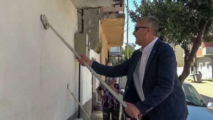 Badana konusunda yardımcı da olan Özkan'ın 'Ulaşamadığınız yerler varsa ben hazır buradayım, boyayabilirim' sözleri gülüşmelere neden oldu. Başkan Özkan, ayrıca mahalledeki vatandaşlarla da sohbet etti ve çocuklarla hatıra fotoğrafı çektirdi.