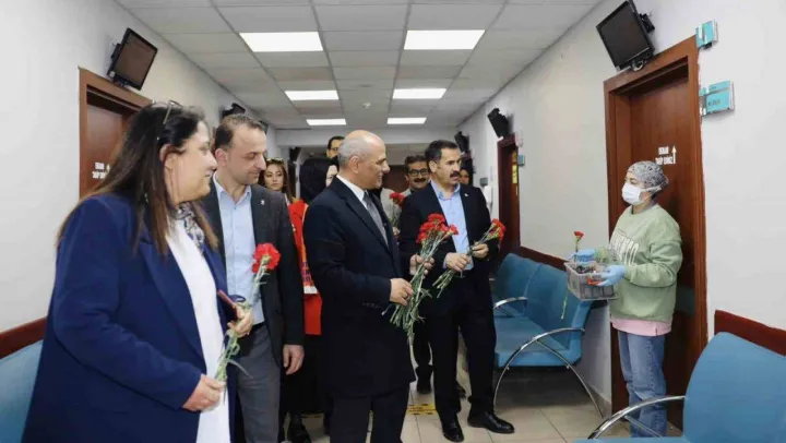 İlk olarak Çamlıtepe'de bulunan Körfez Devlet Hastanesini ziyaret eden Başkan Şener Söğüt, Başhekim Ömer Dağ ile bir araya geldi. Daha sonra da hastane içerisinde görev yapan sağlık çalışanlarının gününü kutlayan Başkan Söğüt, karanfil verdi.