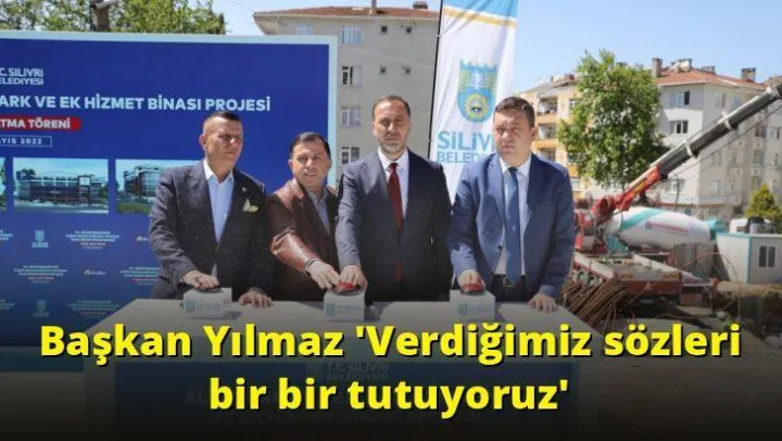 Silivri'nin ilk katlı otoparkının temeli atıldı. Silivri Belediyesi tarafından yapılan Alibey Mahallesi Katlı Otopark ve Ek Hizmet Binası temel atma töreni yoğun bir katılımla gerçekleştirildi. Başkan Yılmaz açılışta yaptığı konuşmada ''7 gün 24 saat aşkla ve heyecanla çalışıyoruz'' dedi.