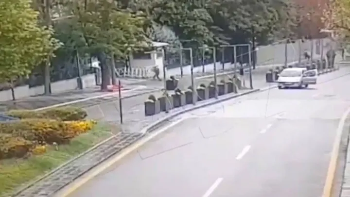 Ankara'da 2 teröristin İçişleri Bakanlığı Emniyet Genel Müdürlüğü giriş kapısına yönelik yaptığı bombalı saldırıya ilişkin yeni görüntülere ulaşıldı. Görüntülerde teröristlerin hafif ticari araç ile yanaştığı ve polislere ateş ettiği görüldü. Ateş ederek polislerin üstüne koşan bir terörist, sonra üstündeki bombayı patlattı. Diğer teröristin ise elindeki silah ile ateş ettiği görüldü. O anlar anbean güvenlik kameralarına yansıdı.