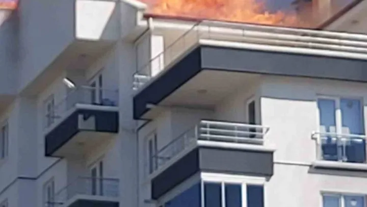 Ankara'nın Elmadağ ilçesinde 4 katlı binanın teras katında yangın çıktı.