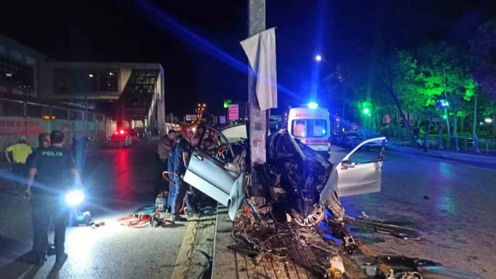 Başkentte direğe çarpan araç hurdaya döndü: 1 ölü
