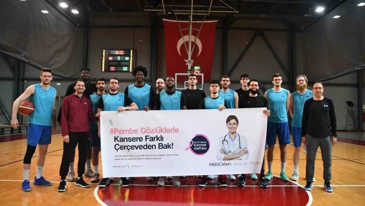 Toplumda kanser bilincini yükseltmek ve farkındalık oluşturmak isteyen Basketbol Takımı, Bursa'daki maçı öncesi yaptığı antrenmana pembe gözlükle çıktı. 'Kansere Farklı Çerçeveden Bak' pankartı taşıyan oyuncular, kanserde erken teşhisin önemine dikkat çekti.