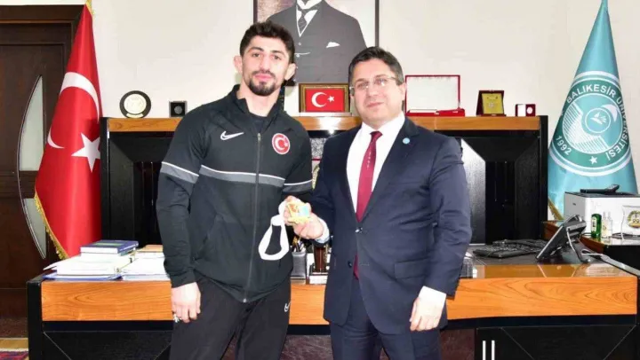 Mısır'ın İskenderiye kentinde düzenlenen Ibrahim Moustafa Ranking Serisi'nde grekoromen stil 60 kilogramda altın madalya kazanarak şampiyon olan Balıkesir Üniversitesi (BAÜN) Spor Bilimleri Fakültesi öğrencisi Kerem Kamal, BAÜN Rektörü Prof. Dr. Oğurlu'yu makamında ziyaret etti.