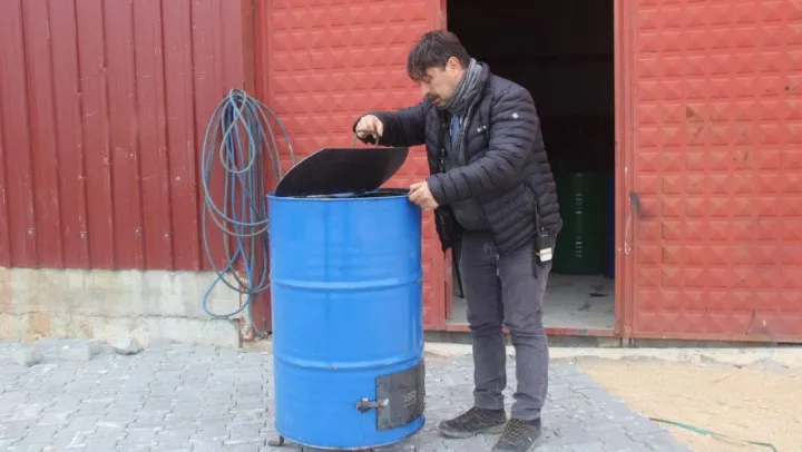 Çanakkale'nin Bayramiç ilçe Belediyesi ekipleri, saç bidonlarını sobaya dönüştürerek, deprem bölgesine gönderiyor.