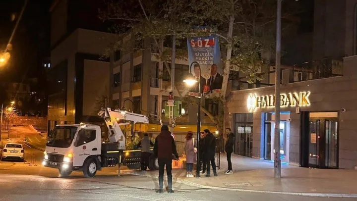 CHP'li Bilecik Belediyesine ait sepetli vinç ile milletvekili adayları Yaşar Tüzün ve Vedat Kazıcı'nın fotoğraf karelerinin bulunduğu pankartın asılmasına AK Parti'den tepki geldi. AK Parti Bilecik İl Başkanı Serkan Yıldırım yaptığı açıklamada, 'Nasıl iyi mi böyle. İsterseniz belediye binasındaki T.C Bilecik Belediyesi tabelasını sökün yerine CHP Bilecik İl Başkanlığı, CHP Bilecik Merkez İlçe Başkanlığı CHP Bilecik İl Gençlik Kolları Başkanlığı diye üçünün tabelasını asın. Ne kural bıraktınız, ne utanmanız kaldı. Bu milletin parasını millete hizmet için kullanın, parti çalışmalarında değil' dedi.