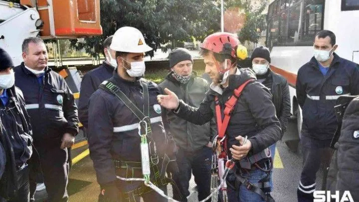 Osmangazi Belediyesi personeline iş güvenliği uzmanları tarafından yüksekte güvenli çalışma eğitimi verildi.