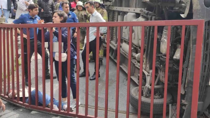Beşiktaş'ta içinde sürücü bulunmayan minibüs yokuş aşağı kayarak önce bir kadına, sonra da doğalgaz kutusuna çarpıp devrildi. Minibüsün çarptığı doğalgaz kutusunda patlama meydana gelince paniğe kapılan vatandaşlar, sızıntı kesilene kadar yaralı kadına müdahale edemedi.