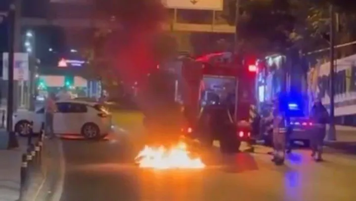 Beşiktaş Kadırgalar Caddesi'nde seyir halindeki motosiklet alevlere teslim oldu. İtfaiye ekiplerinin müdahalesiyle söndürülen motosiklet kullanılamaz hale geldi. O anları vatandaşlar cep telefonu kamerasıyla kaydetti.