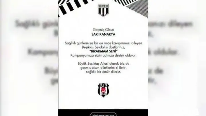 Süper Lig'in 33. haftasında ezeli rakibi Fenerbahçe'yi konuk eden ve rakibini her yıl 19 Temmuz'da kutlanan Dünya Fenerbahçeliler Günü'nde 2-0 mağlup eden Beşiktaş, maçın ardından sosyal medya hesabından Fenerbahçe'ye ince bir göndermede bulundu. Sergen Yalçın'ın Beşiktaş forması giydiği dönemde Fenerbahçe'ye son dakikada attığı frikik golünü paylaşan Beşiktaş, videoda 'Derbi gecesinde kederli arkadaşlarınızı teselli etmek için dev hizmet. Geçmiş olsun belgesi. Haydi centilmen Beşiktaş taraftarı, sen de geçmiş olsun de' ifadelerini kullandı ve Fenerbahçe için hazırlanan 'Geçmiş olsun' sertifikasını yayınladı. Sertifikada 'Geçmiş olsun Sarı Kanarya. Sağlıklı günlerinize bir an önce kavuşmanızı dileyen Beşiktaş Sevdalısı dostlarınız 'Bırakmam Seni' kampanyamıza sizin adınıza destek oldular. Büyük Beşiktaş Ailesi olarak biz de geçmiş olsun dileklerimizi iletir, sağlıklı bir ömür dileriz' ifadelerine yer verildi.