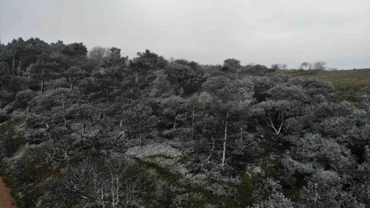 İstanbul?da beklenen kar yağışı şehrin yüksek kesimlerinde etkisini göstermeye başladı. Aydos Tepesi ve çevresindeki ormanlık alan beyaza büründü. O anlar havadan görüntülendi.