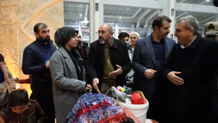 Şanlıurfa Büyükşehir Belediye Başkanı Zeynel Abidin Beyazgül, Vali Salih Ayhan ile birlikte fuar merkezindeki depremzede misafirleri ziyaret etti.