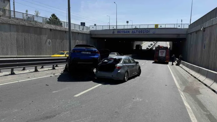 İstanbul Beylikdüzü'nde alt geçitte aniden oluşan trafiği fark edemeyen sürücü aracıyla zincirleme kazaya neden oldu. 6 aracın karıştığı kazada 3 kişi hafif yaralanırken, kaza yapan arabanın başka bir arabanın üstünde durması ilginç görüntü oluşturdu.