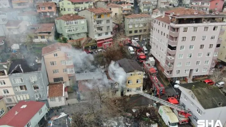 Beyoğlu'nda iki katlı binada yangın çıktı. Kilometrelerce uzaktan görülen yangın ekiplerin yoğun uğraşları sonucu söndürüldü.