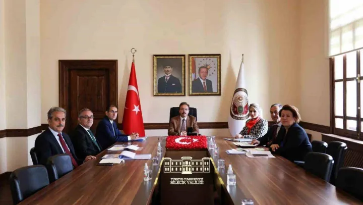 Bilecik Valisi Dr. Kemal Kızılkaya başkanlığında Eğitim Yatırımları Değerlendirme toplantısı yapıldı. Gerçekleştirilen toplantıda il genelinde devam eden eğitim yatırımları değerlendirildi. Bilecik İl Özel İdaresi Genel Sekreteri Seda Bayrakçı ve İl Milli eğitim Müdürü Mustafa Sami Akyol'un eşlik ettiği toplantı sonrası bir açıklama yapan Vali Kızılkaya, 'Devam eden eğitim yatırımlarını değerlendiriyoruz. Bu çerçevede; 1 okul tamamlandı, 8 okulun yapımı devam ediyor, 1 okul ihale aşamasında, 2 okul proje aşamasında. Projeler tamamlandığında 12 yeni ve modern eğitim yuvasını şehrimize kazandıracağız' dedi.