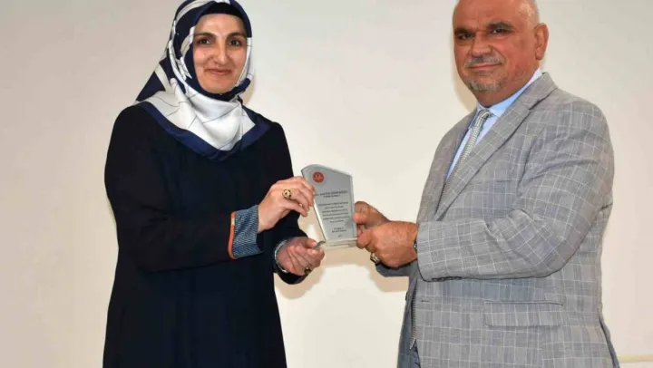 Veda programın sonunda Müftü Erhun Aysel Hacıömroğlu'na teşekkür plaketini takdim etti.