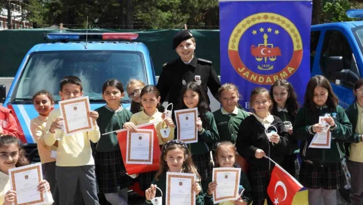 Bilecik'te bir ilkokulda öğrencilere jandarma tarafından trafik denetimlerinde kullanılan araç ve malzemelerin tanıtımı yapıldı.