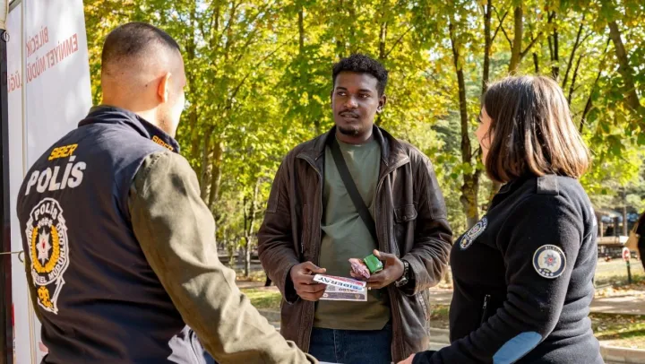 Bilecik İl Emniyet Müdürlüğü tarafından yürütülen 'Güven ve bilinç temelli iletişim' faaliyetleri kapsamında, Şeyh Edebali Üniversitesi'nde özel bir stand açıldı. Terörle Mücadele, Narkotik Suçlarla Mücadele, Siber Suçlarla Mücadele ve Toplum Destekli Polislik Şube Müdürlüklerinin katılımıyla gerçekleşen etkinlikte, öğrencilere hem bilgilendirici hem de farkındalık artırıcı uygulamalar sunuldu. Standı ziyaret eden üniversite öğrencileri, dolandırıcılık çeşitleri, polislik mesleğine giriş şartları, KADES uygulaması ve genel güvenlik önlemleri hakkında detaylı bilgilere ulaştı. Polis ekipleri, öğrencilerin sorularını yanıtlayarak güvenli yaşam ve suçla mücadele konularında bilinçlenmelerini sağladı.