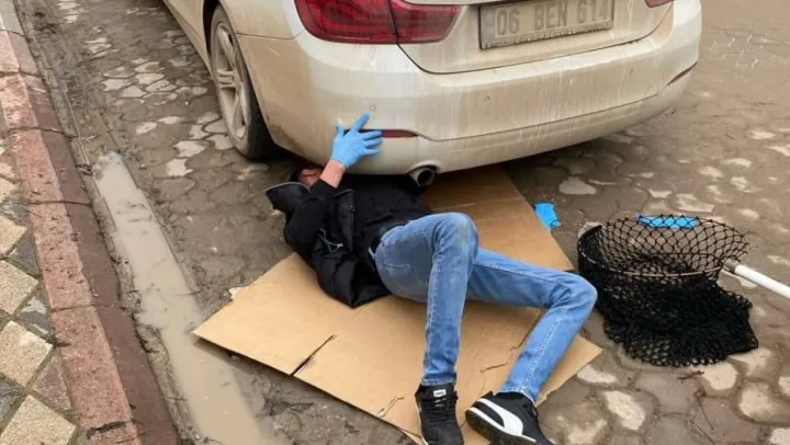Bilecik'te park halindeki otomobilin altında sıkışan kedi kurtarıldı