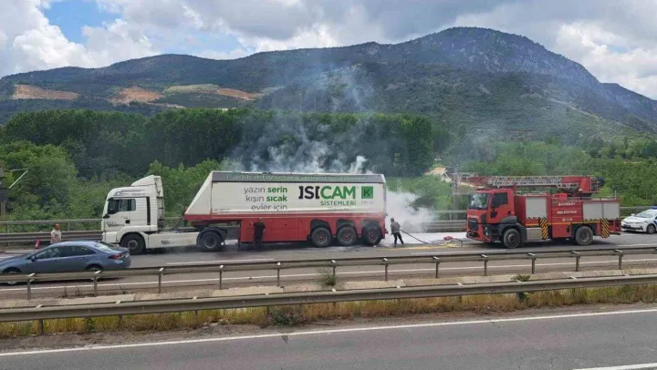 Bilecik'te seyir halindeki tır bir anda alev alırken, itfaiyenin anında müdahalesiyle yangın büyümeden söndürüldü.