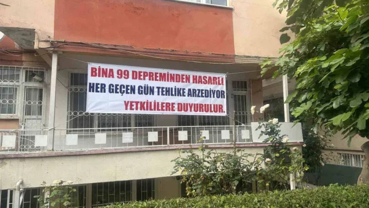 Bakırköy'de 1999 yılında hasar alan ve sonrasında bina sakinleri tarafından tahta parçalarıyla güçlendirilmeye çalışılan bir daire sahibi duruma isyan ederek binaya 'Bu bina 1999 depreminden hasarlı her geçen gün tehlike arz ediyor yetkililere duyurulur' şeklinde pankart astı.