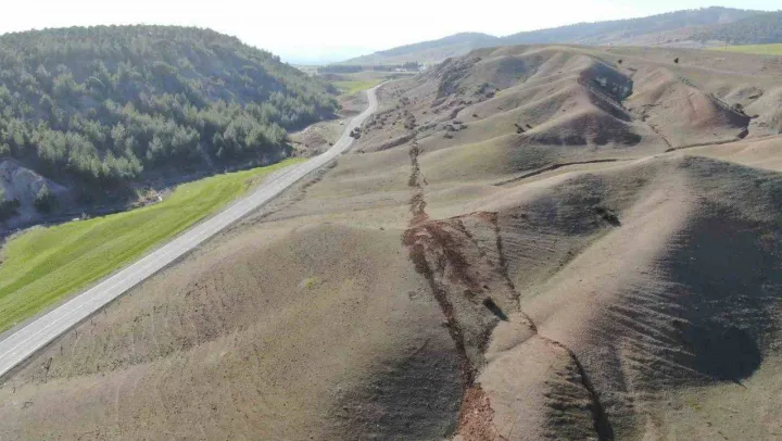 Binaları yıkan deprem doğaya da zara verdi, bölge havadan görüntülendi